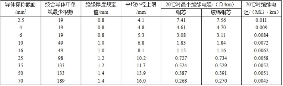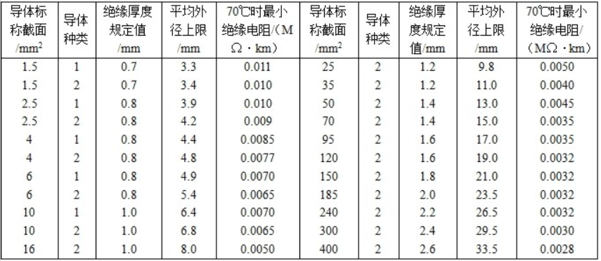 2)絕緣:幾包在導體上的絕緣影視代號為PVC-C的聚氯乙烯混合物。絕緣厚度應符合表1、表2的規定。